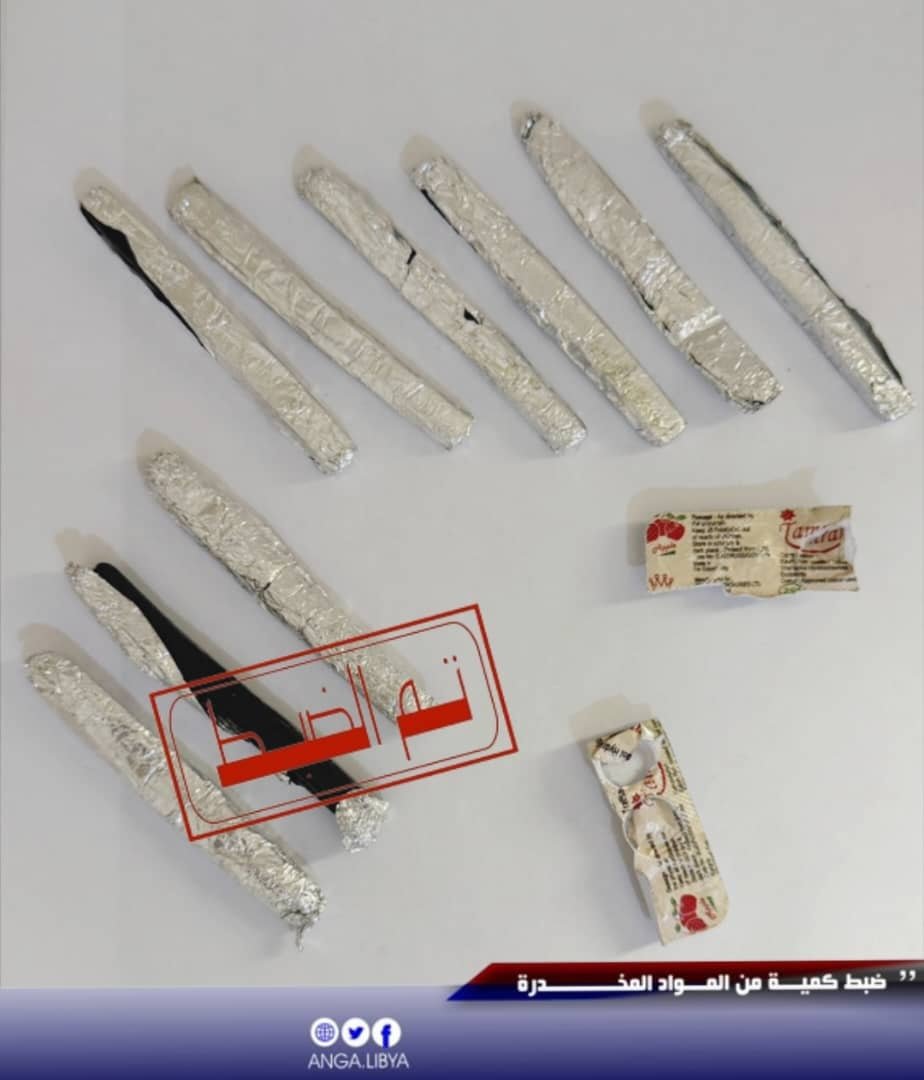 فيما يتعلقن في القضية الأولى، قال الجهاز عبر صفحته الرسمية أنه تم ضبط شخصين يحملان الجنسية الليبية، وبحوزتهما عدد 8 قطع يُشتبه في كونها من مخدر الحشيش.