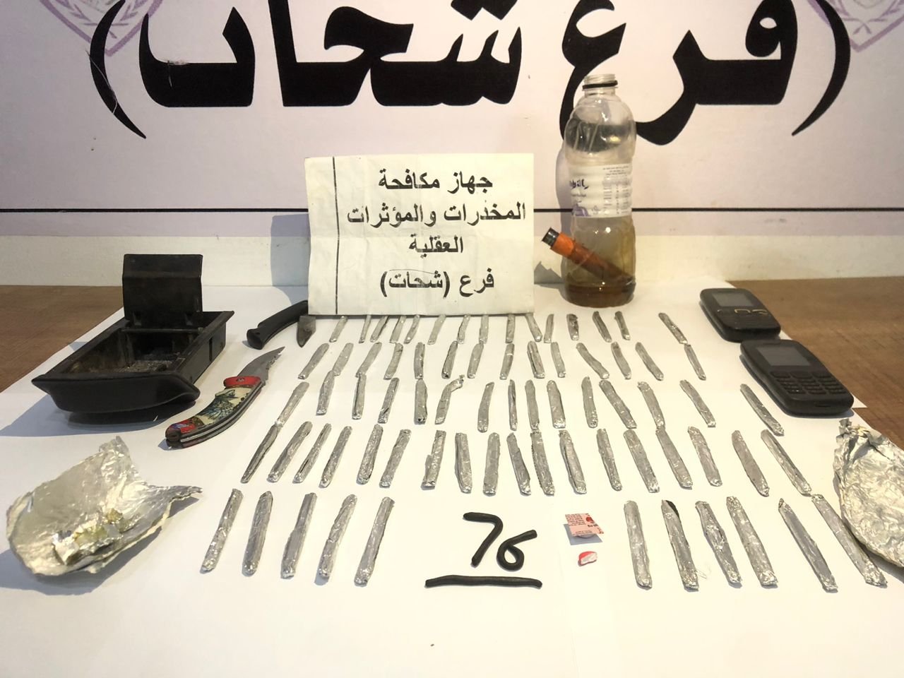 وقال “الجهاز”، في بيان له، إنه عُثر بحوزته على 76 قطعة حشيش، إضافة إلى حبة ونصف من عقار “ترامادول”، وقد أحيل إلى الجهات المختصة لاستكمال التحقيقات واتخاذ الإجراءات القانونية.