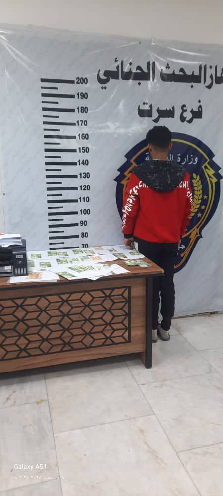 أعلن جهاز البحث الجنائي فرع سرت الإطاحة بمزور عملة محلية، وذلك عقب بلاغ تقدم به أحد المواطنين بعد اكتشافه مبلغاً مالياً مزوراً أثناء معاملة تجارية.