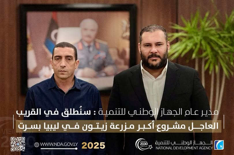 بحث مدير عام الجهاز الوطني للتنمية مع رئيس جهاز استثمار مياه النهر الصناعي بالمنطقة الوسطى تأسيس أكبر مزرعة زيتون في ليبيا بمدينة سرت.