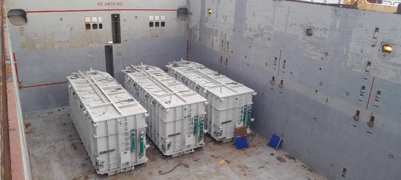أعلنت الشركة العامة للكهرباء وصول 4 محولات ضخمة جهد 400 ك.ف.ا ووزن كل واحد منهم 252 طن إلى ميناء طرابلس البحري، تمهيدا لنقلها عبر شاحانات ضخمة إلى مشروع محطة توليد جنوب طرابلس الجديدة.