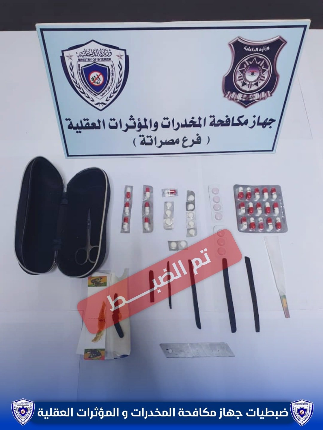 ألقى جهاز مكافحة المخدرات القبض على شخص ليبي في منطقة السكيرات بمدينة مصراتة بحوزته 39 قرص يشتبه في كونها من أقراص نوع لاريكا، ترامادول، روفتريل، بالإضافة إلى 6 قطع يشتبه في كونها من مخدر الحشيش.