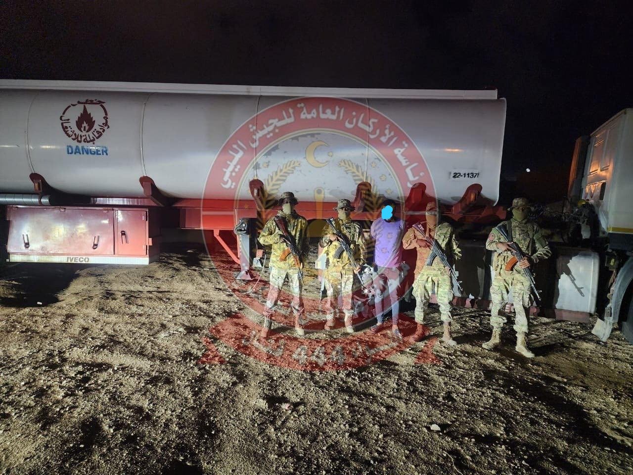 أعلن اللواء 444 قتل تمكن مفرزة من الجيش الليبي جنوب مدينة غريان، وبالتعاون مع قسم مكافحة التهريب والمخدرات غريان، من ضبط شحنة وقود معدّة للتهريب، بعد عمليات رصد وتتبع دقيقة، حيث تم إلقاء القبض على السائق وهو يقود خزان وقود بسعة 40 ألف لتر، كان ينوي تهريبها بعد أن حاول التمويه بإدعائه تفريغ الحمولة في إحدى محطات الوقود.