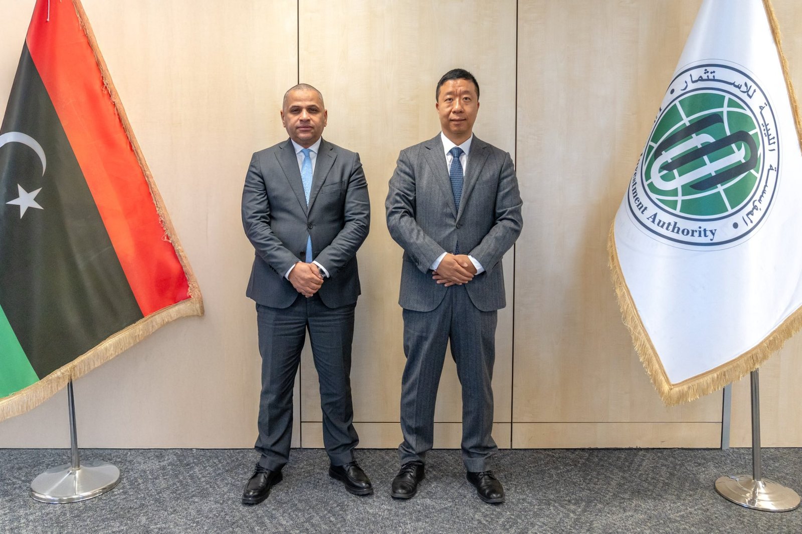 بحث رئيس مجلس الإدارة والمدير التنفيذي للمؤسسة الليبية للاستثمار، الدكتور علي محمود حسن، مع القائم باعمال سفارة جمهورية الصين لدى دولة ليبيا، ليو جيان، سبل التعاون المشترك وآليات تنفيذ قرار مجلس الأمن بشأن إعادة استثمار الاحتياطيات النقدية المجمدة.
