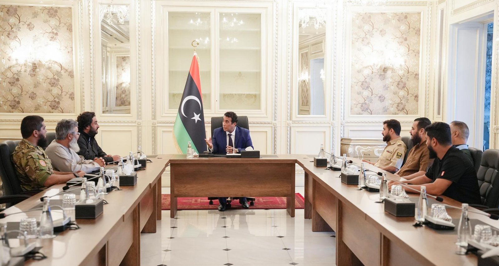 وبحسب بيان للمكتب الإعلامي لـ”المنفي”، اطلعت اللجنة الرئيس بالخطوات الأولية المتخذة فيما يتعلق بالمهام المكلفة بها، حيث جرى التأكيد على توجيهات “المنفي” فيما يتعلق بضرورة ضبط الأمن واستتبابه في العاصمة، والعمل على استمرار تثبيت وقف إطلاق النار، وإخلاء المدينة من كل المظاهر العسكرية، وإلزام كل الأطراف بضرورة الانخراط والتقيد بعمل اللجان المكلفة بالخصوص.
