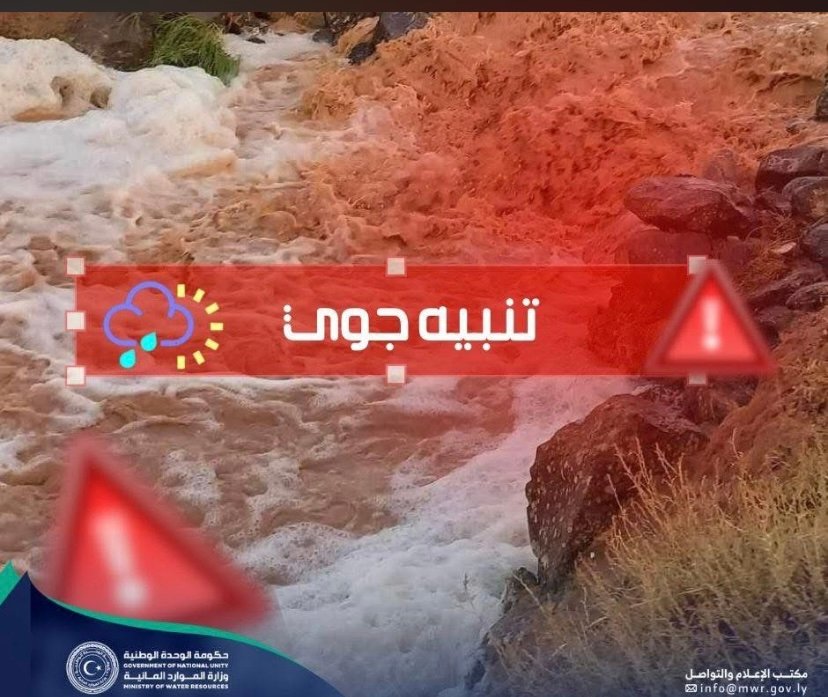 دعت وزارة الموارد المائية بحكومة الوحدة الوطنية بالابتعاد عن مجاري الأودية وأماكن تجمع المياه، وضرورة متابعة التحديثات الجوية الصادرة عن الجهات المختصة.