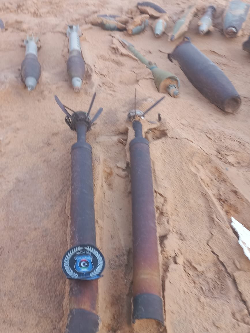 أعلن جهاز المباحث الجنائية رصد مخلفات حربية بالقرب من مدخل طريق الشاطئ بمدينة سبها، موضحا انتشال عدد من القذائف والصواريخ المضادة للطائرات والدبابات، تمثلت في قذائف هاون بمختلف العيارات، وقذائف هاوزر، وراجمة، إلى جانب قذائف (C5) و(PMP) وسترِم، وقذائف (RPG)، وقذائف مدفع موجه.