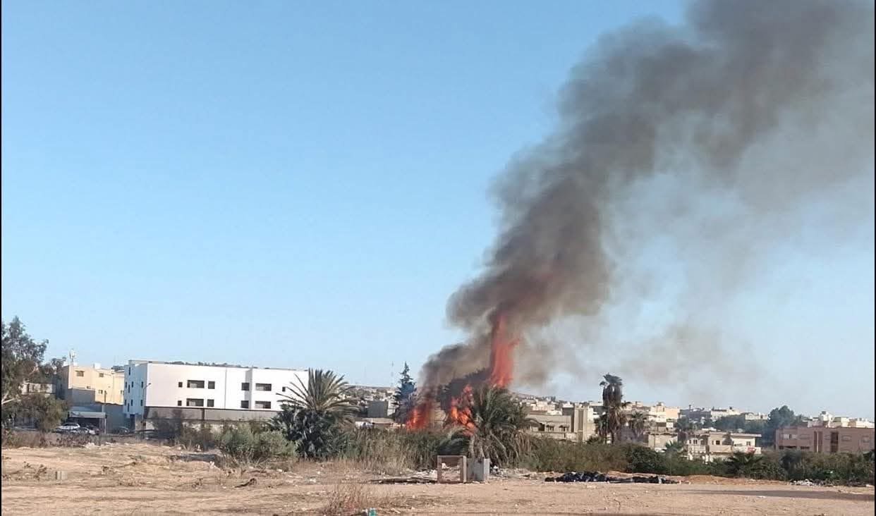 اندلاع حريق في ساحة مستشفى مسلاتة المركزي