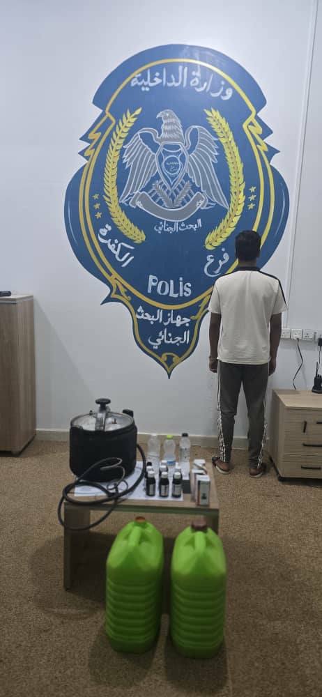 أعلن جهاز البحث الجنائي فرع الكفرة ضبط 4 أشخاص بينهم وافدين، بعد مداهمة مزرعة في منطقة الهواري؛ لورود معلومات في استخدامها لأغراض تصنيع الخمور.