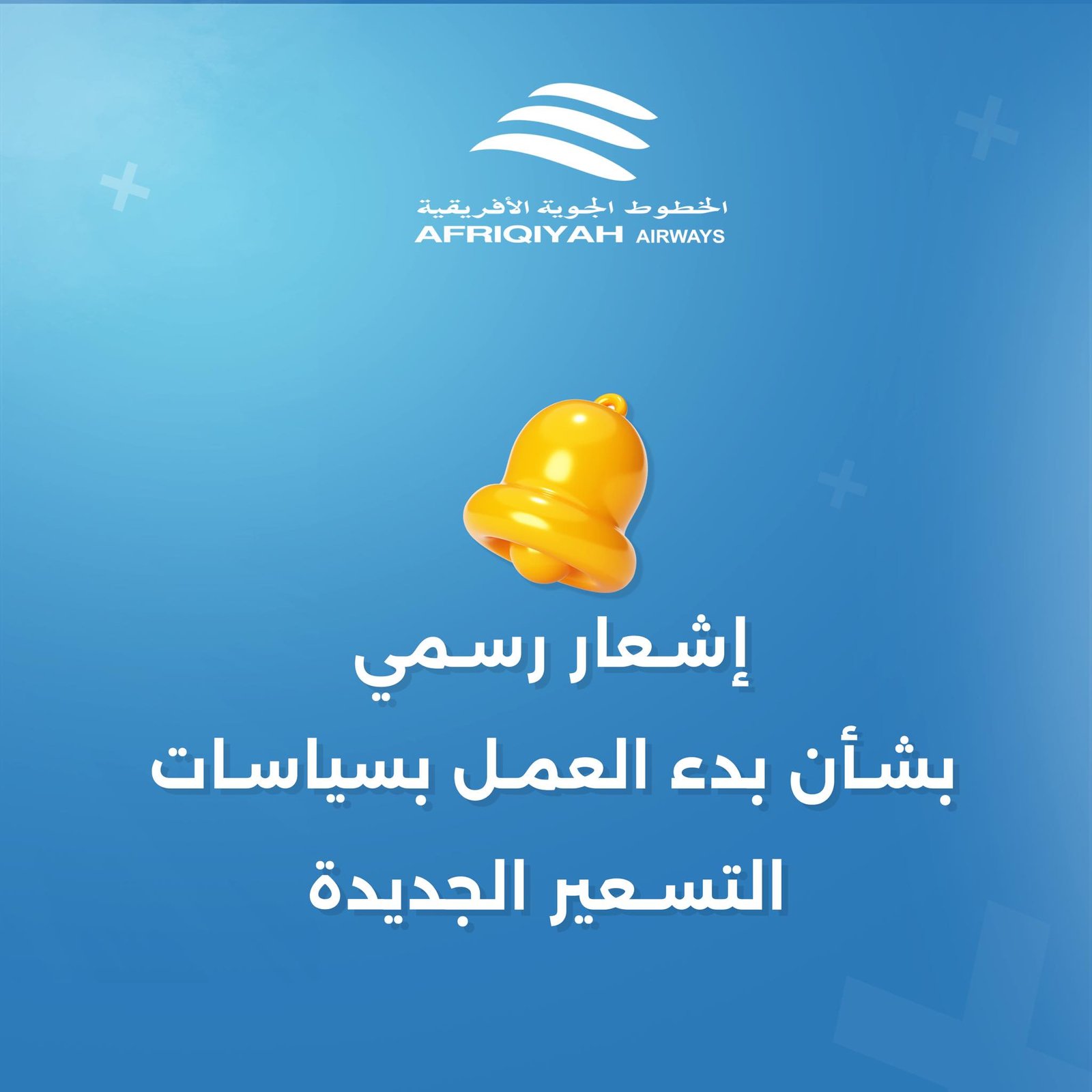 أعلنت شركة الخطوط الجوية الإفريقية، اعتماد وتطبيق التحديثات الجديدة على أسعار التذاكر في إطار التحديثات المتعلقة بسياسات التسعير الجديدة الصادرة عن مصرف ليبيا المركزي، والمتعلقة بتعديل سعر صرف الدينار مقابل الدولار.