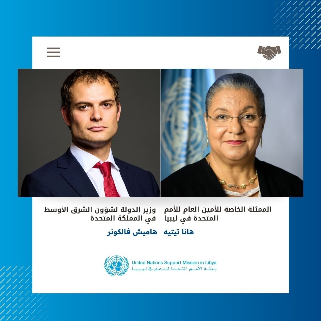 بحثت الممثلة الخاصة للأمين العام للأمم المتحدة في ليبيا، هانا تيتيه، اليوم الجمعة مع وزير الدولة لشؤون الشرق الأوسط في المملكة المتحدة، هاميش فالكونر، المشهد السياسي والاقتصادي والأمني في ليبيا في ضوء التطورات الأخيرة، وذلك على هامش منتدى أنطاليا الدبلوماسي.