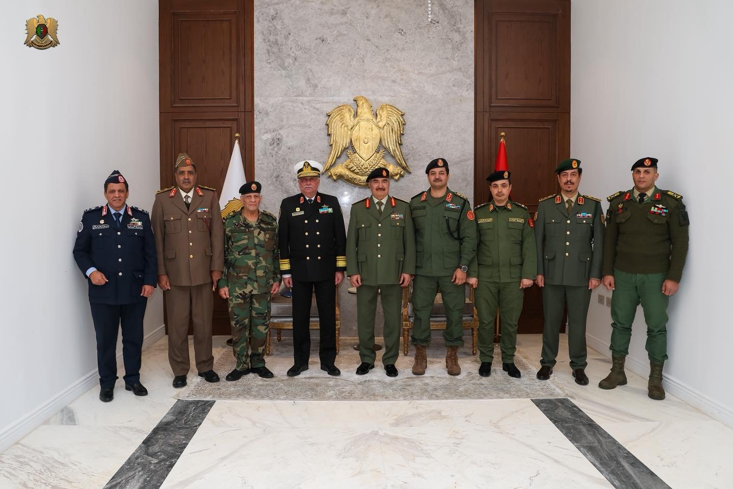 وبحسب بيان لـ”القيادة العامة”، اليوم الثلاثاء، جاء ذلك خلال اجتماع مع رئيس الأركان، الفريق أول ركن “خالد حفتر”، ورؤساء الأركان العامة، الفريق بحار “شعيب الصابر”، واللواء “عبدالسلام الحاسي”، واللواء ركن “عادل بوشاح”، واللواء “أحمد المسماري”، واللواء ركن “صفوان بوطيغان”، وذلك بمكتبه في مقر القيادة العامة.