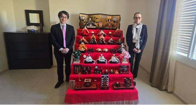 وخلال اللقاء، قدّم السفير الياباني لنائبة المبعوثة الأممية دمى «هينا ماتسوري» (يوم الفتيات)، وهي تقليد ياباني يرمز إلى التمنيات بالسعادة والازدهار، وتضم الدميتان في طبقتها العلوية رمزي الإمبراطور والإمبراطورة.