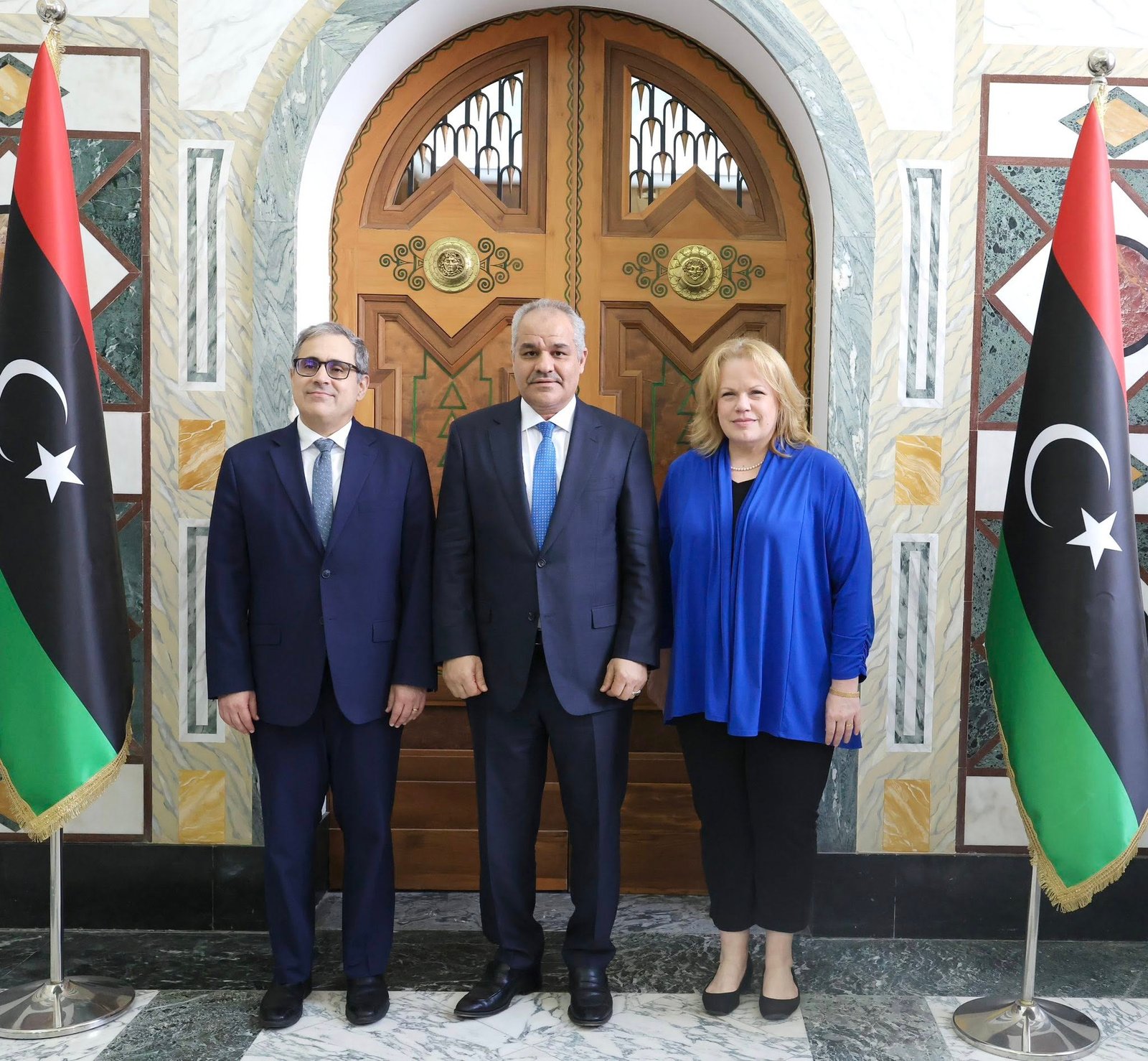بحث محافظ مصرف ليبيا المركزي، ناجي عيسى، في مكتبه مع القائم بأعمال سفارة الولايات المتحدة لدى ليبيا، جيرمي برنت، ونائبة رئيس البعثة الدبلوماسية بالسفارة، إنغا هيمينكو، المستجدات المالية والاقتصادية، والجهود المبذولة لتنفيذ الإطار الموحد للإنفاق العام، بالإضافة إلى الإصلاحات التي ينفذها المصرف المركزي لتحقيق الاستقرار المالي والاقتصادي.