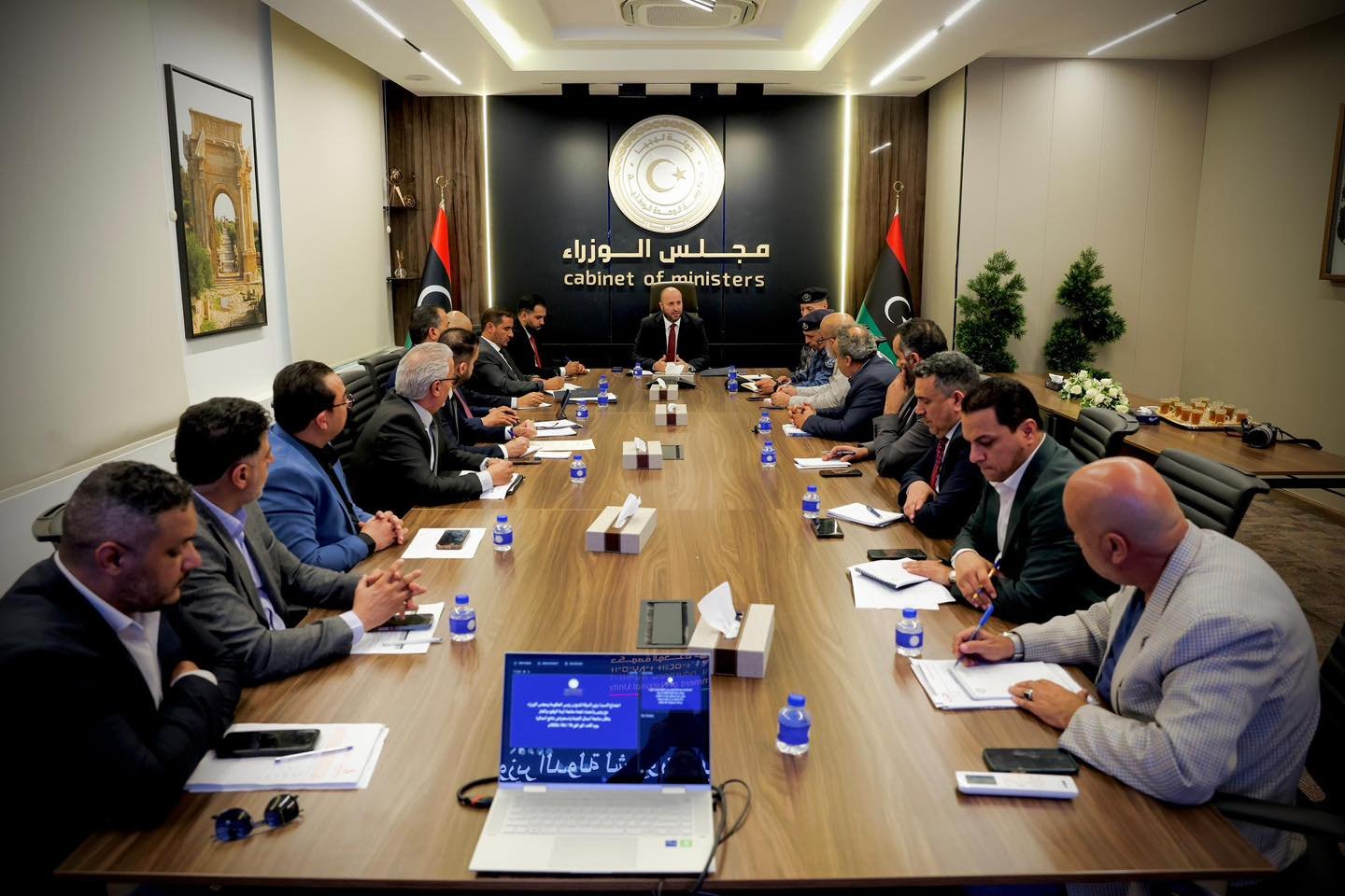 بحث وزير الدولة لشؤون مجلس الوزراء ورئيس الحكومة “محمد بن غلبون” اليوم مع لجنة متابعة أزمة الغاز والوقود مستجدات تزويد محطات الوقود، وذلك بحضور رئيس اللجنة المكلف اللواء “علي النويصري” ومدير إدارة المتابعة بديوان رئاسة الوزراء “خليفة شليق” وعدد من الأعضاء.