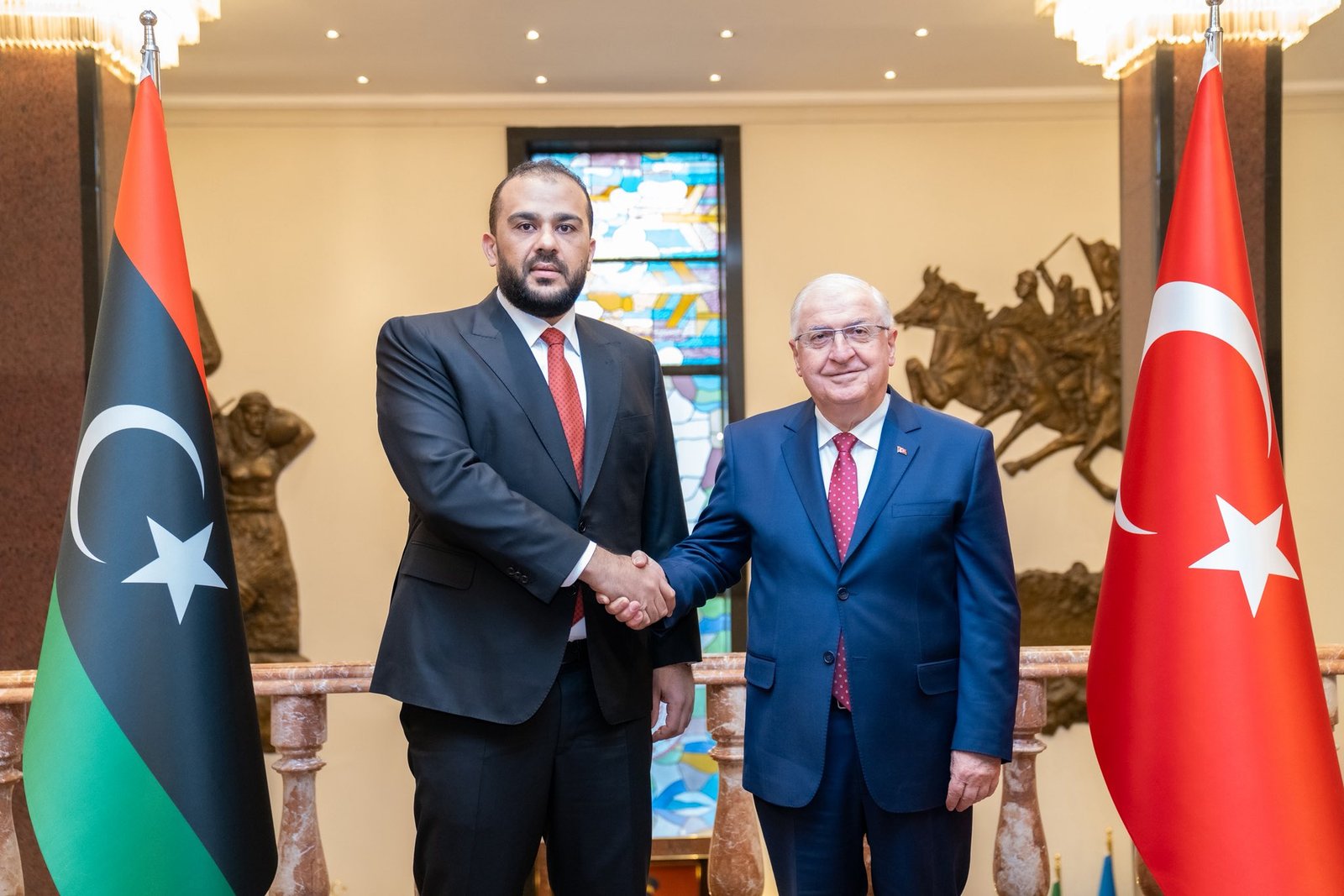 بحث وزير الدفاع التركي يشار غولر، أمس الجمعة، مع وكيل وزارة الدفاع، عبد السلام الزوبي، بمقر وزارة الدفاع التركية في أنقرة، آفاق تعزيز التعاون في المجالات الدفاعية، بما في ذلك التدريب وبناء القدرات وفق الاتفاقيات النافذة بين البلدين، إلى جانب مناقشة سبل تبادل الخبرات الفنية، وتعزيز التنسيق المؤسسي بين وزارتي الدفاع، واستعراض مجالات التعاون القائم بما يخدم المصالح المشتركة.