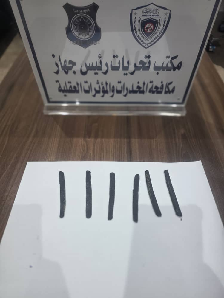 أعلن جهاز مكافحة المخدرات والمؤثرات العقلية القبض على المدعو (خ. م. م. ق) في منطقة المساكن بمدينة بنغازي، بعد مطاردة أعقبت قيامه بإطلاق النار على دوريات التحريات أثناء تنفيذ عملية لضبط أحد تجار المخدرات.