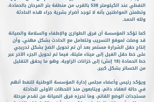 المؤسسة الوطنية للنفط تؤكد استمرار إنتاج حقل الشرارة على الرغم من الحريق في خط تصدير النفط الخاص بهاقتصاد18 مارس, 10:03