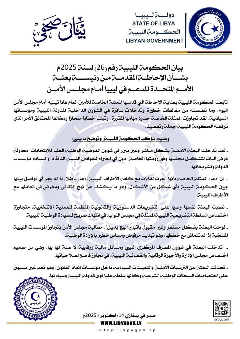 الحكومة الليبية المكلفة تنتقد إحاطة “هانا تيتيه” أمام مجلس الأمن معتبرةً إياها “إنحرافاً خطيرًا”