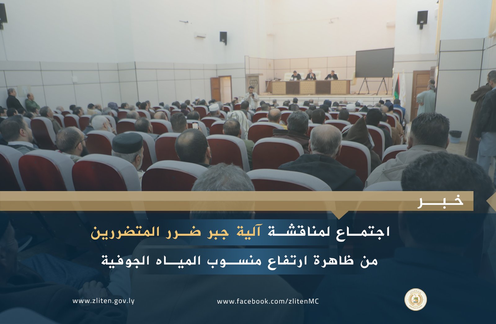 أعلن المجلس البلدي زليتن وصول الدفعة الأولى من تعويضات المتضررين من ظاهرة ارتفاع منسوب المياه الجوفية والتي تقدر بـ25 مليون دينار، مشيرا إلى توزيعها عن طريق النسبة والتناسب على 1549 ملف متضرر، من خلال ديوان الإسكان والتعمير بالبلدية.