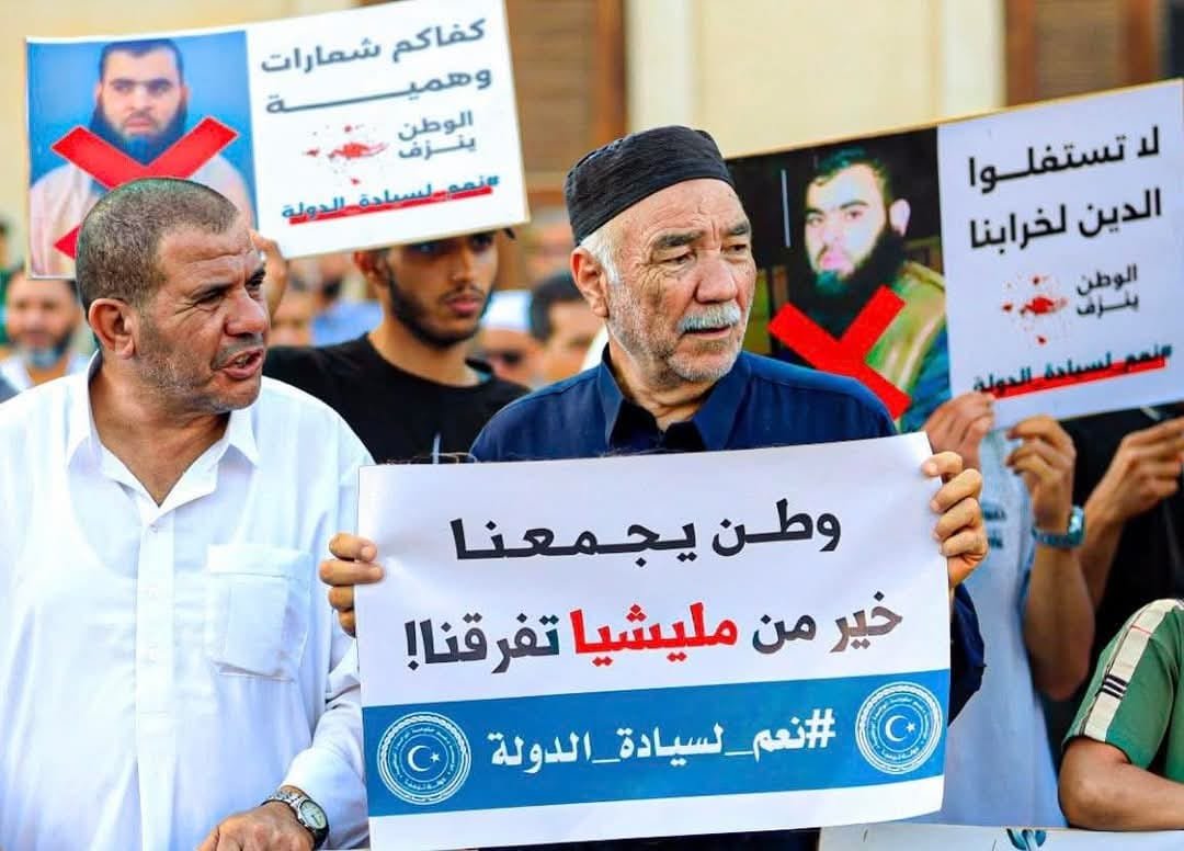 “حل الميليشيات ودعم القانون “لا للميلشيات نعم للدولة” بهذة العناوين حمل المتظاهرون الداعمون لدبيبة لافتات اعلنوا مساندتهم له.