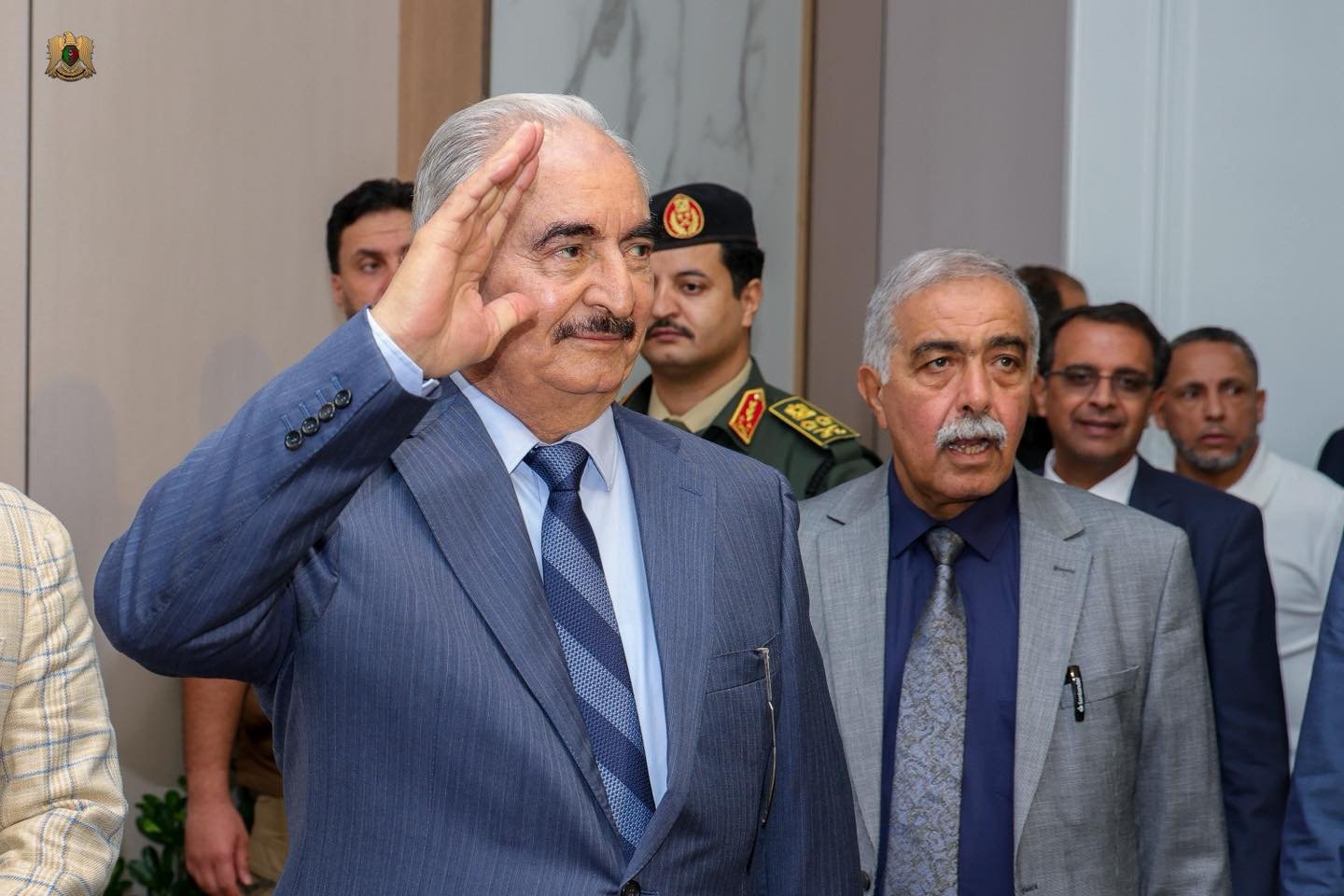 جاء ذلك خلال استقباله مشايخ وأعيان وحكماء وأساتذة مدينة ترهونة، في مدينة المشير خليفة حفتر العسكرية، بحضور رئيس الحكومة الليبية، أسامة حماد”، ورئيس الأركان العامة، الفريق أول ركن “خالد حفتر”، ومستشار الأمن القومي، الفريق أول “عبدالرازق الناظوري”.