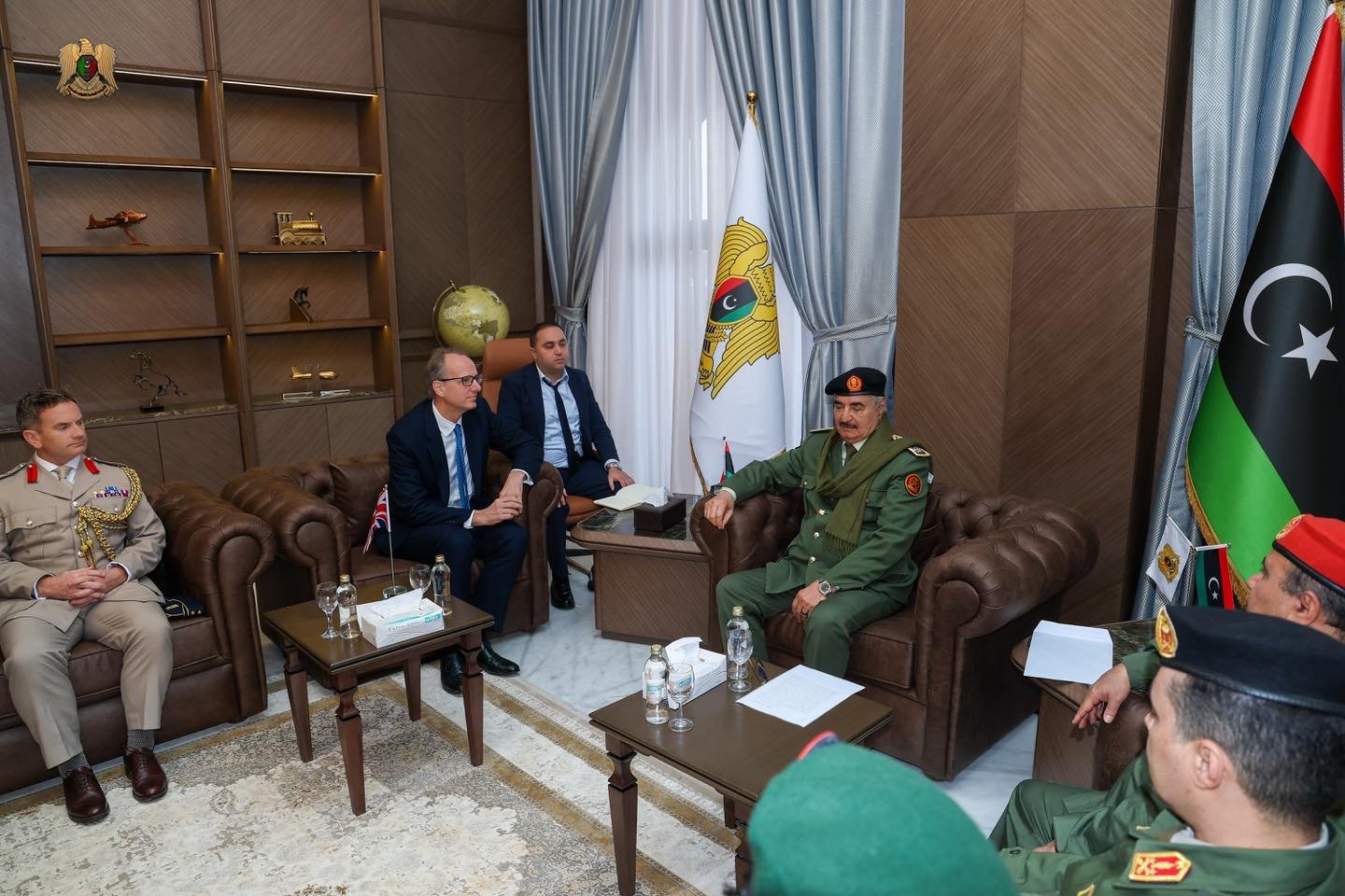 جاء ذلك خلال اجتماع مع القائد العام للقوات المسلحة، المشير أركان حرب “خليفة حفتر” في مكتبه بمقرّ القيادة العامة، حيث بحثا التحديات المتعلقة بمكافحة الهجرة غير الشرعية وشبكات تهريب البشر.