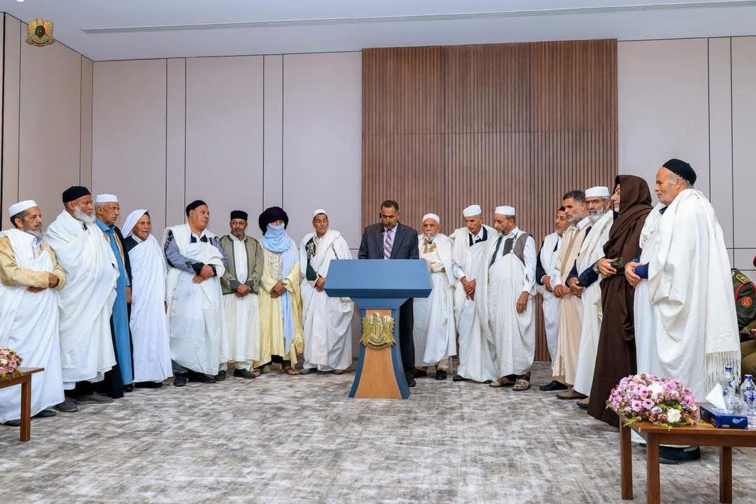 جاء ذلك خلال استقباله لمشايخ وأعيان وحكماء قبائل مناطق الساحل الغربي، في مدينة المشير خليفة حفتر العسكرية.