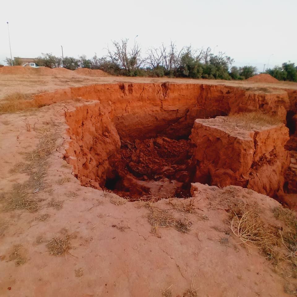 رصد مركز الشرطة الزراعية سوق الخميس إمسيحل التابع لفرع النواحي الأربعة وجود تشققات وانجرافات أرضية كبيرة في منطقة الهيرة، يصل عمق بعضها إلى نحو 10 أمتار، وتقع بجوارها أشجار زيتون وعدد من المساكن، مما يشكّل خطرًا على السكان والممتلكات.