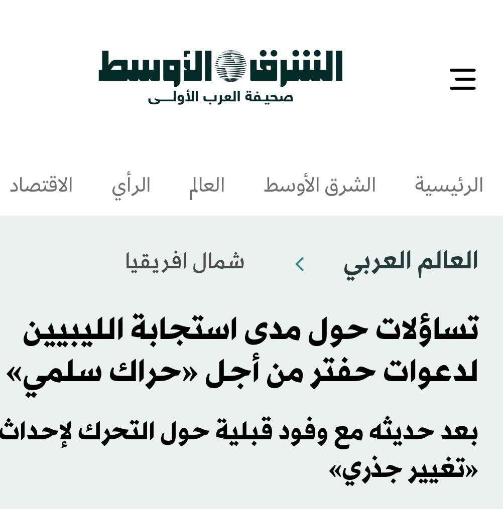 طرحت صحيفة الشرق الاوسط تساؤلات حول مدى استجابة الليبيين لدعوات حفتر من أجل حراك سلمي بعد حديثه مع وفود قبلية حول التحرك لإحداث «تغيير جذري».