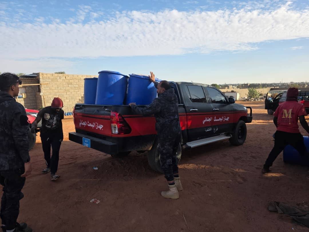 أعلن جهاز البحث الجنائي فرع الكفرة ضبط 22 برميلاً، سعة 200 لتر، لتهريب الوقود مخبأة في مزرعة خاصة بالجالية السودانية، في إطار جهوده لمكافحة تهريب الوقود.