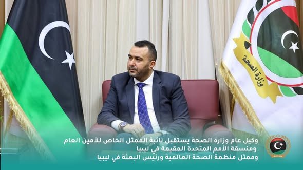 وتم الإجتماع، وفقًا لمنشور الوزارة، بحضور ممثل منظمة الصحة العالمية ورئيس البعثة في ليبيا “أحمد زويتن”، ومدير مكتب الوكيل العام، ومدير إدارة التعاون الدولي بالوزارة.