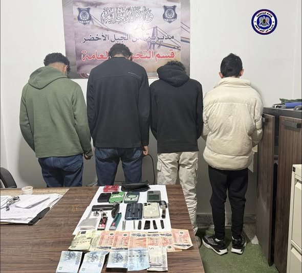 أعلنت مديرية أمن الجبل الأخضر عن تمكن قسم التحريات العامة من ضبط مركبة نوع شفر على متنها أربعة أشخاص يقومون بترويج السموم في الشارع العام.