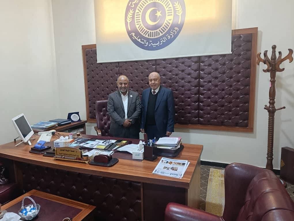 اطّلع وزير التربية والتعليم بالحكومة المكلفة من مجلس النواب، “جمعة خليفة الجديد”، على الصعوبات والتحديات التي تواجه العملية التعليمية في مناطق بلدية الجفرة، والإحتياجات الضرورية للمؤسسات التعليمية، وذلك في إطار الجهود الرامية إلى توفير بيئة تعليمية مناسبة وآمنة للطلاب والمعلمين.