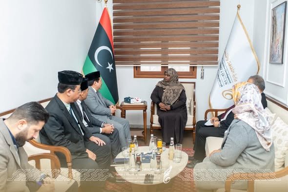 جاء ذلك خلال لقاء عُقد بمكتب الوزيرة بحضور الوفد المرافق للقائم بأعمال السفارة الإندونيسية ومدير مكتب التعاون الدولي “خليفة الحامدي”، وخبير التعاون “ماجدة العالم”، ومدير مكتب الإعلام والتواصل “عادل العيساوي”، بحسب بيان الوزارة.