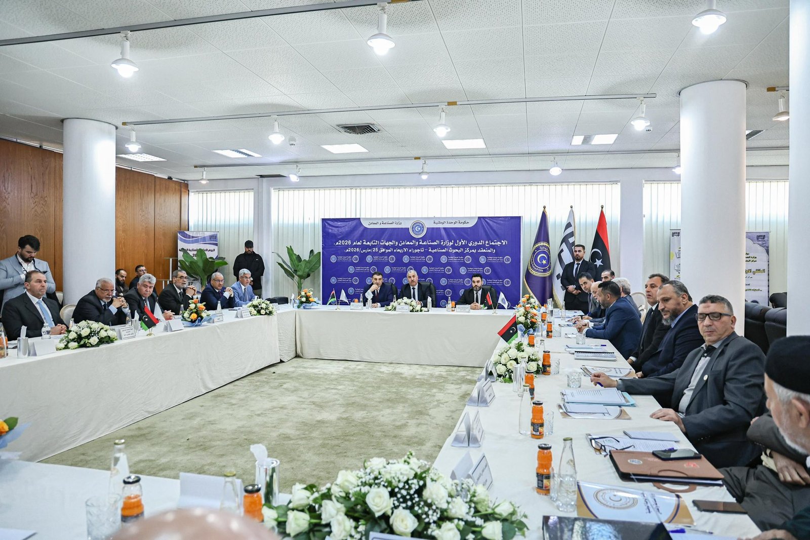 عقد وزير الصناعة والمعادن بحكومة الوحدة الوطنية المؤقتة “محمد عبدالقادر”، اليوم الأربعاء، الإجتماع الدوري الأول للوزارة والجهات التابعة لها، وذلك بمقر مركز البحوث الصناعية، بحضور وكيل الوزارة “مصطفى السمو”، ورؤساء مجالس الإدارات، والمدراء العامين للهيئات والمؤسسات والشركات التابعة، إلى جانب مدراء الإدارات والمكاتب ورؤساء الأقسام بديوان الوزارة.